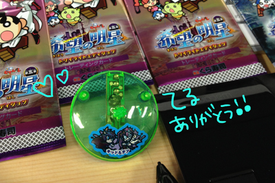 てるに貰ったカードと、びっくらポン景品のキッドくんとチアさん!