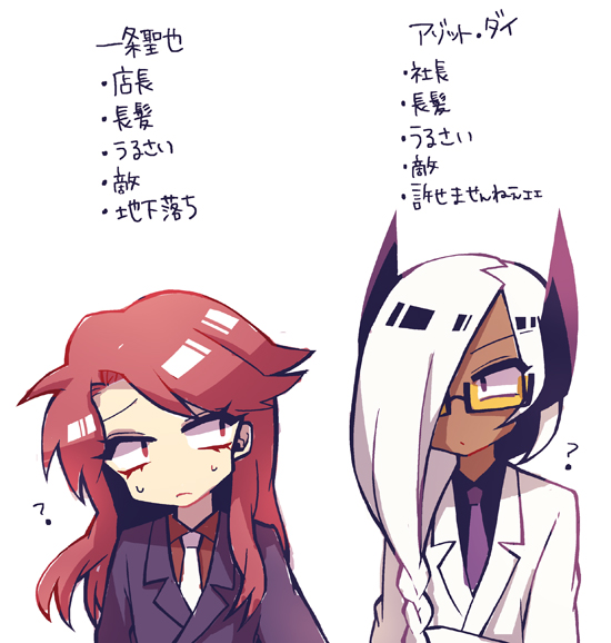 学校で描いてた店長と社長。日本人なので一条ちゃんの方が身長が低いです