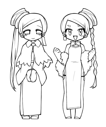 チャイナと和な女の子。ダブルバトル的なのをしかけてくるという設定です